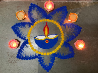 Since I was a child, I have been fascinated by rangolis. I used to love watching my Chachi make pretty rangolis every year during Diwali. After growing up, I tried my hand at rangoli making too, but I don’t remember any of them. However, I can never forget all of this year’s rangolis, especially the final one on Diwali! I spent 4 hours making it. To be honest, I didn’t know I was capable of making it until I tried. Another note to self: Do not say you cannot do something until you try it. Life is full of surprises, indeed!